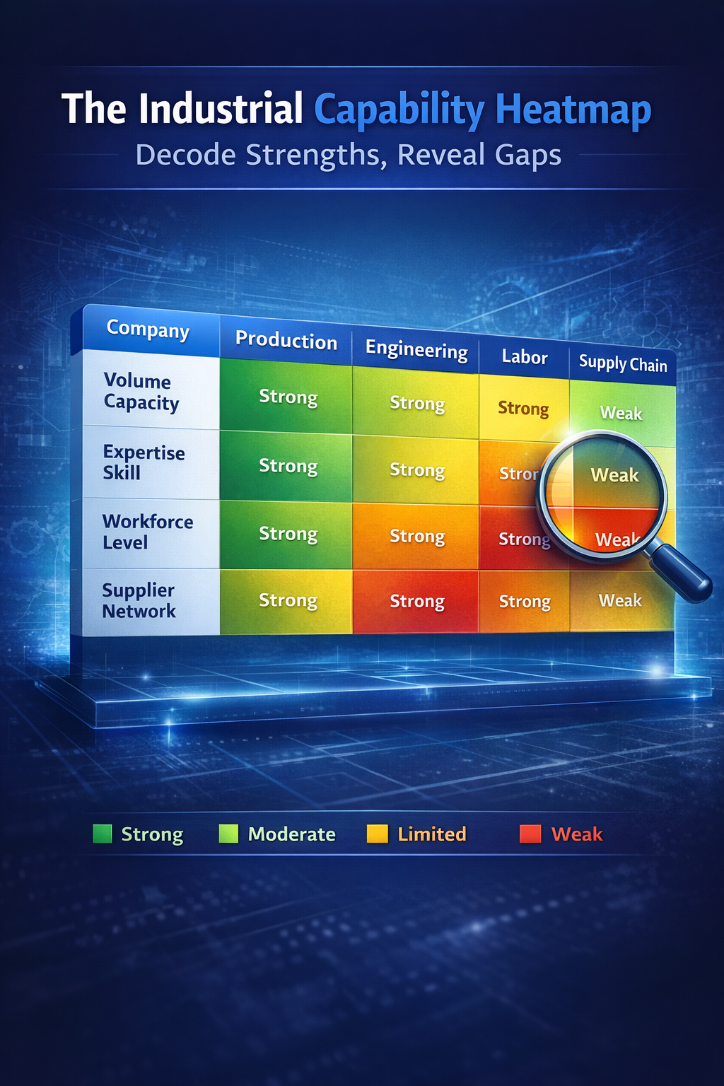 The Industrial Capability Heatmap is built for that moment. It gives the buyer a structured way to validate fit before they commit to the back-and-forth of a full quoting engagement. It reduces ambiguity on both sides. It shortens the time between inquiry and a qualified conversation.